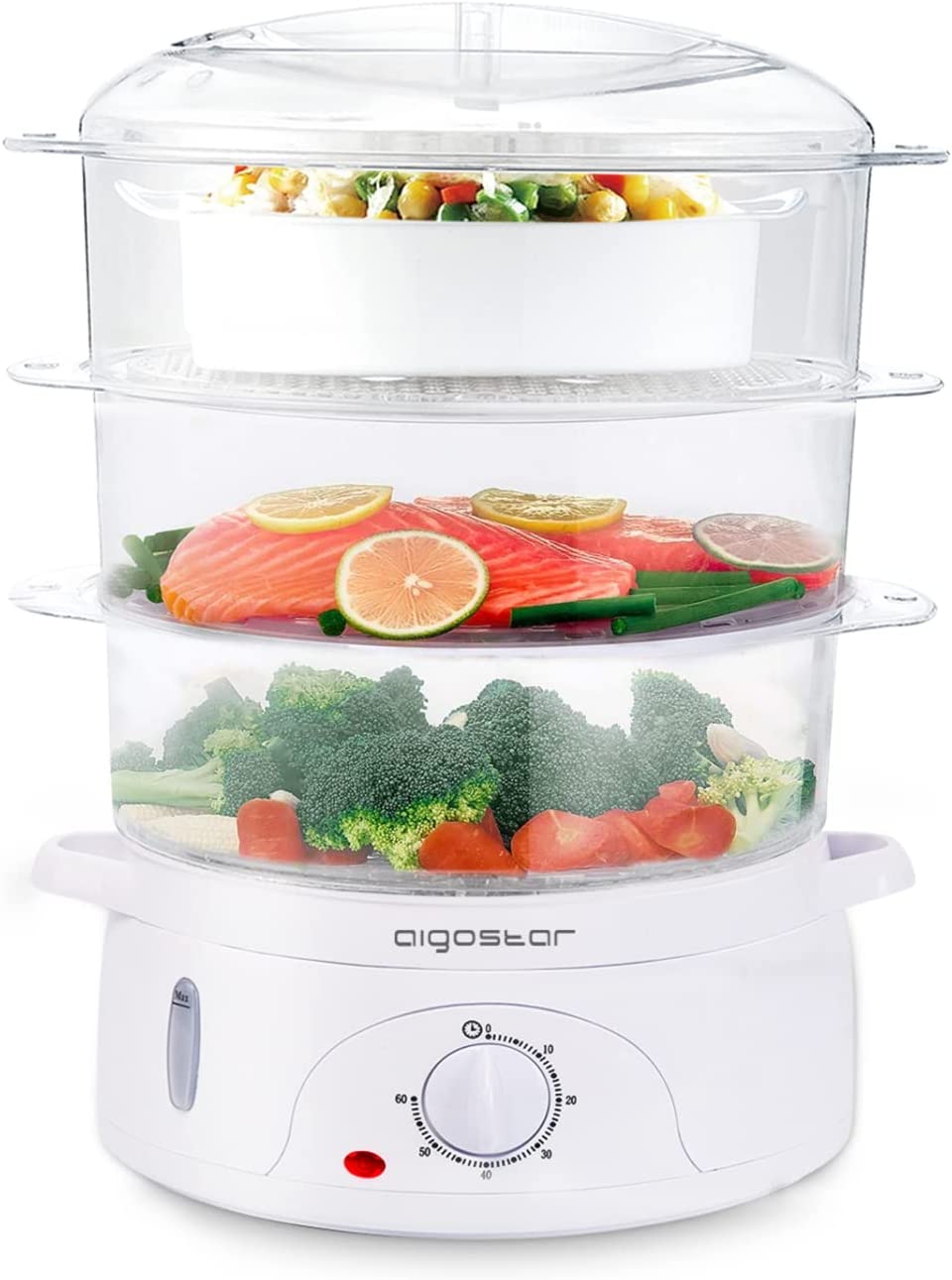 Aigostar Food Steamer 3 Tier – 9L Electric Vegetable Steamer, BPA-Free, 800W, 60 Minute Timer, Rapid Steam, Healthy Cooking, Energy Saving, Easy Clean, Egg Holder, White