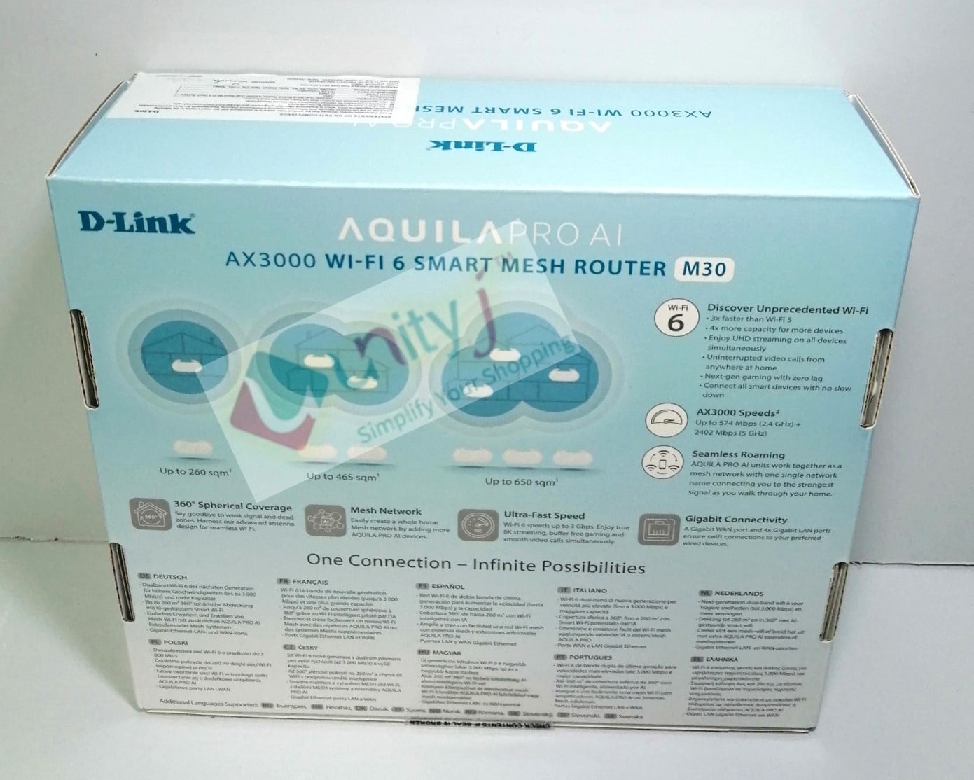 D-Link AX3000 WiFi 6 Router – Dual-Band Mesh Wireless Smart Router with AI WiFi & Traffic Optimiser, 360° Coverage, WPA3 Encryption, MU-MIMO, Gigabit Ports, DFS, Parental Control, Works with Alexa & Google Assistant – M30 AQUILA PRO AI