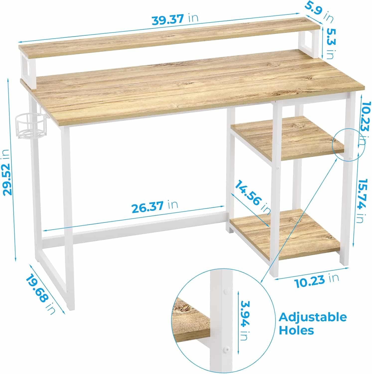- EASY ASSEMBLY: The study desk with storage shelves comes with necessary tools and instructions,all parts are clearly labeled,just following instructions step-by-step.Only need 20 mins