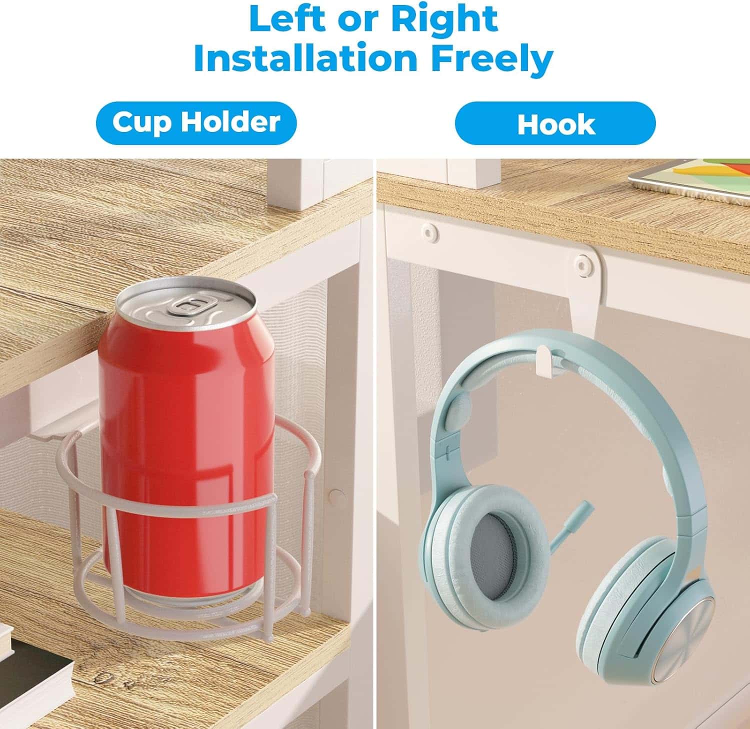 - COMPUTER DESK WITH HOOK AND CUP HOLDER: This office table comes with hooks and cup holders, and you can fix them in any part of your position according to your use habits and convenience, which can effectively save the desktop space.