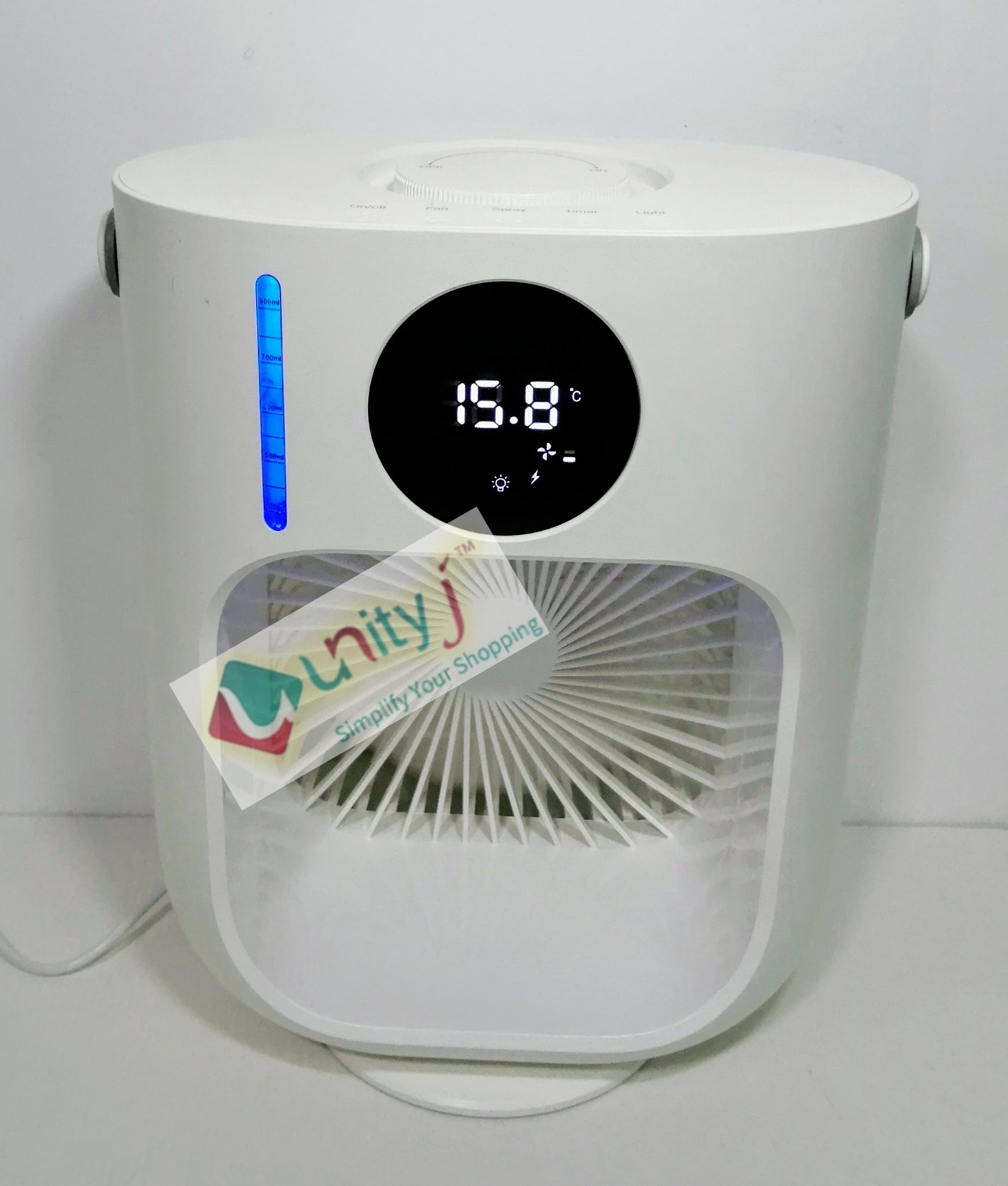• 4 IN 1 MULTI-FUNCTIONAL DESIGN: Not only an air cooler, is also a night light, a mini humidifier. Add ice to the 900ML water tank or simply add ice water for optimal cooling, provides cool airflow on hot summer days. Note: This fan is suitable for personal use, so please do not place it too far away from you.