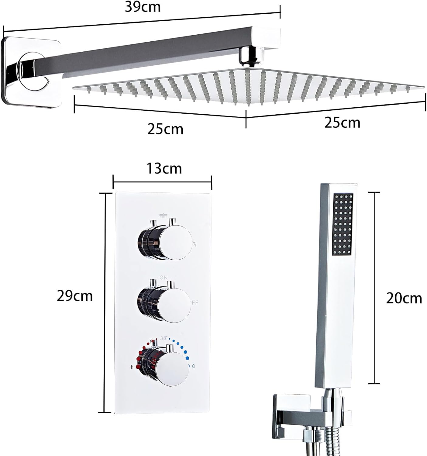 4 reviews for SaniteModar Concealed Shower Set Thermostatic – Chrome Wall Mounted Shower Kit with 30×30cm Stainless Steel Rainfall Head, Brass Thermostatic Mixer Valve, Handheld Shower, Modern Bathroom Built-in Design, Easy Installation